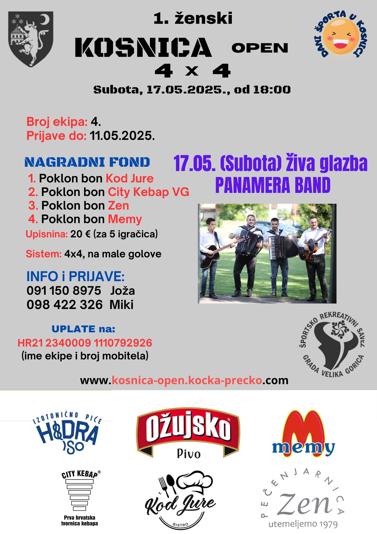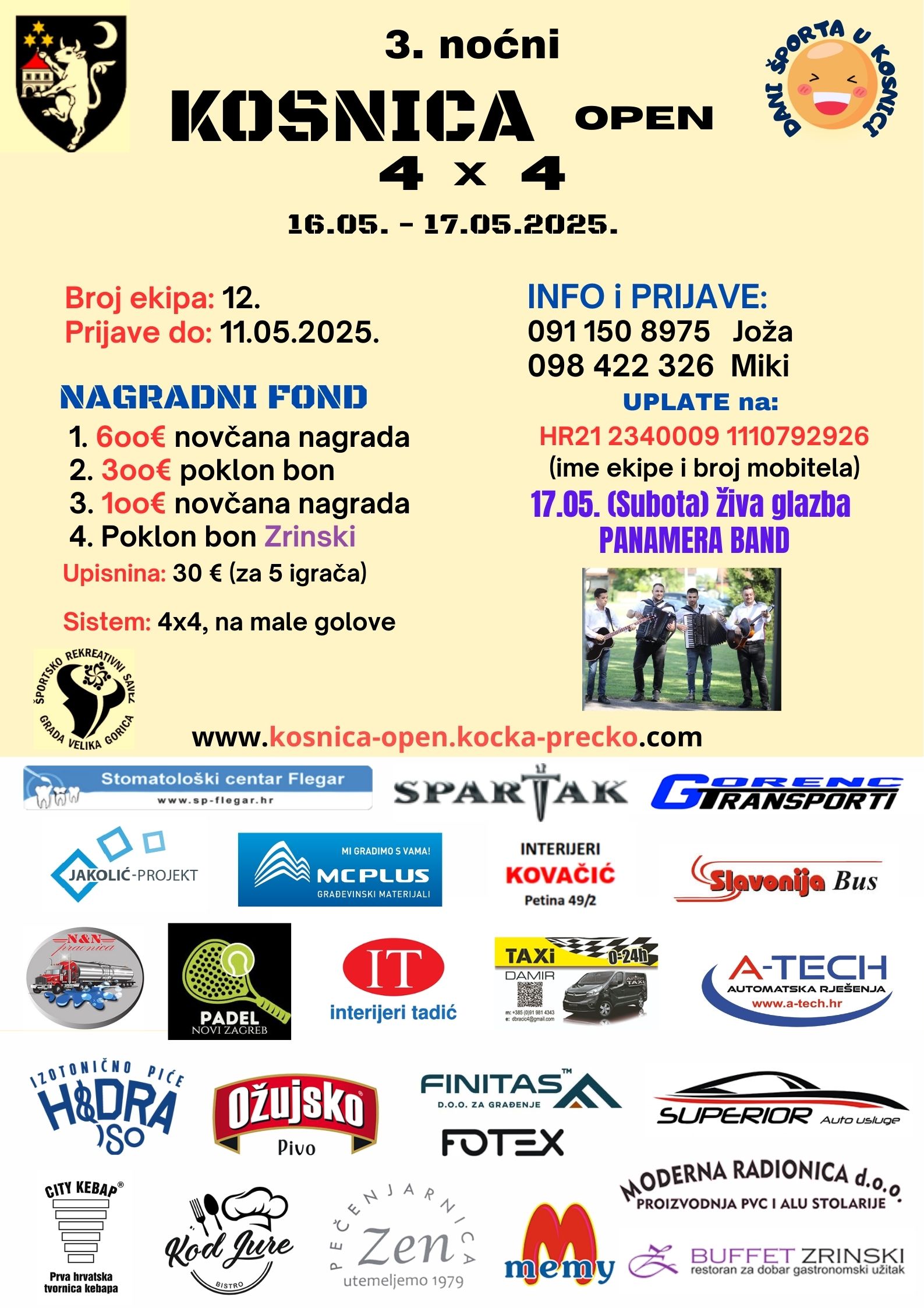 Za one malo manje sklonije fizičkoj aktivnosti bit će organizirano natjecanje u izvođenju kaznenih udaraca, a subotnju završnicu uveličat će naš PANAMERA BAND s svojim cjelovečernjim nastupom.