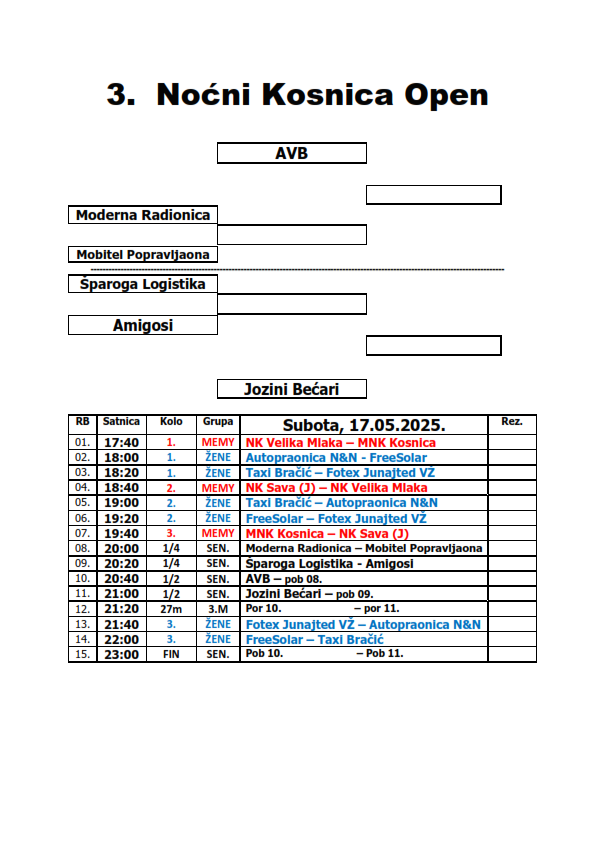 RASPORED za subotu, 17.05.2025.